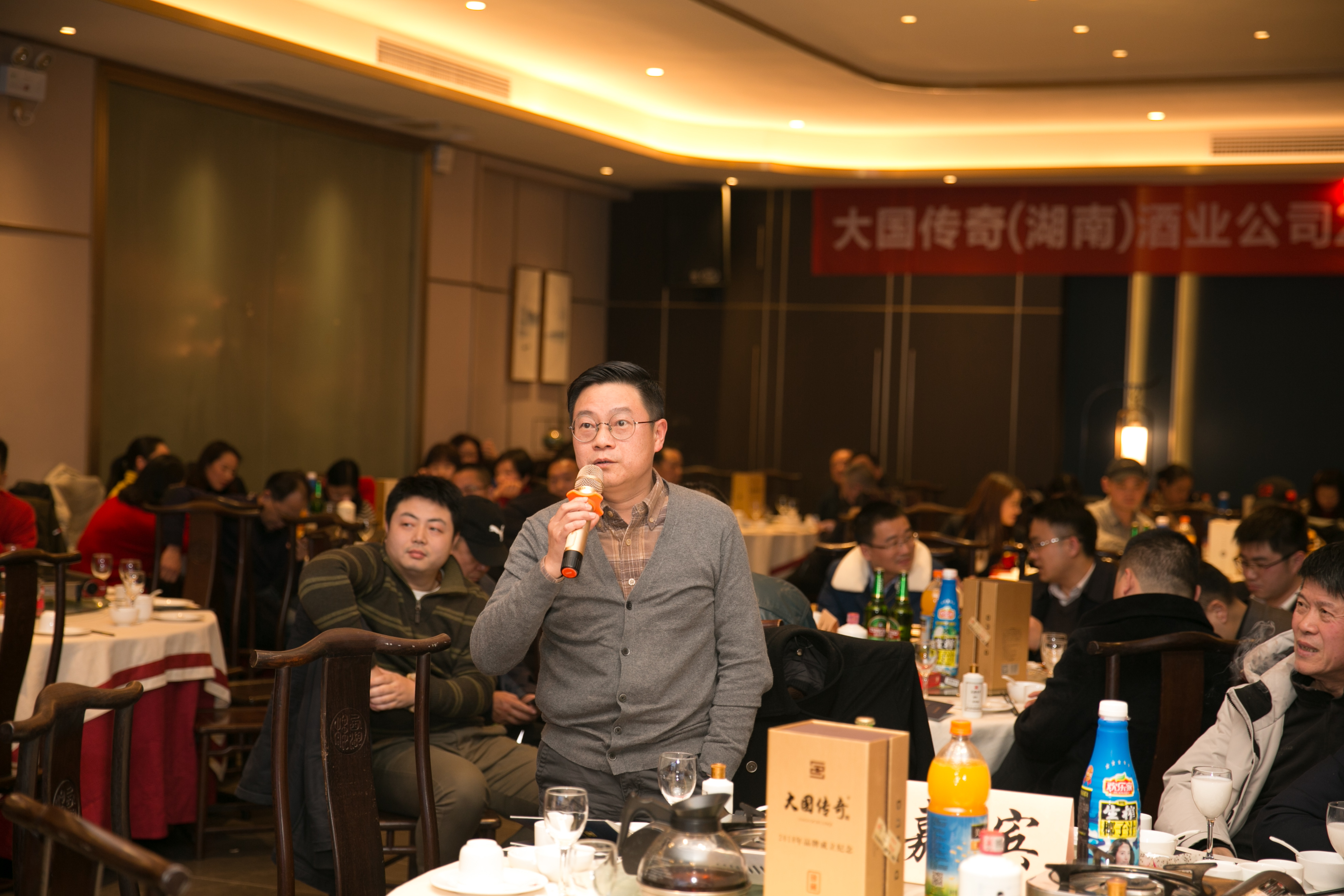 大國傳奇(湖南)酒業(yè)有限公司在王總的大力宣傳、推廣下,獲得了可喜的成績,這離不開大家的支持和幫助,所以在這新春佳節(jié)到來之際,我們翻越高山,跨過大河,來到湖南長沙答謝在座的各位朋友?,F(xiàn)在我僅代表貴州大國傳奇酒業(yè)全體員工向前來參加年會的各位領導和嘉賓們表示衷心的感謝和熱烈的歡迎!